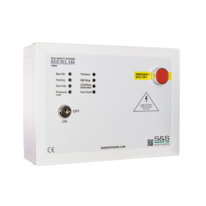 The Merlin 1000V controls gas with the lockable key-switch operation and time out functions. The gas pressure is tested using a unique digital transducer ensuring there are no open gas taps and no gas leaks. In built connectivity allows for connections to existing fire alarm and building management systems and with its easy to use system status panel and labeled PCB the Merlin 1000V is easy to install and easy to operate.