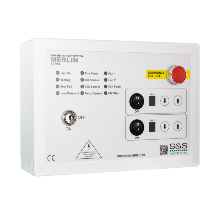 The system comprises of a control panel and a gas pressure sensor. The Merlin CT1750 can receive connections from remote air pressure differential switches or external current monitors, remote emergency shut-off buttons, gas detectors and a CO2 monitor. It can also be integrated with a BMS and fire alarm.